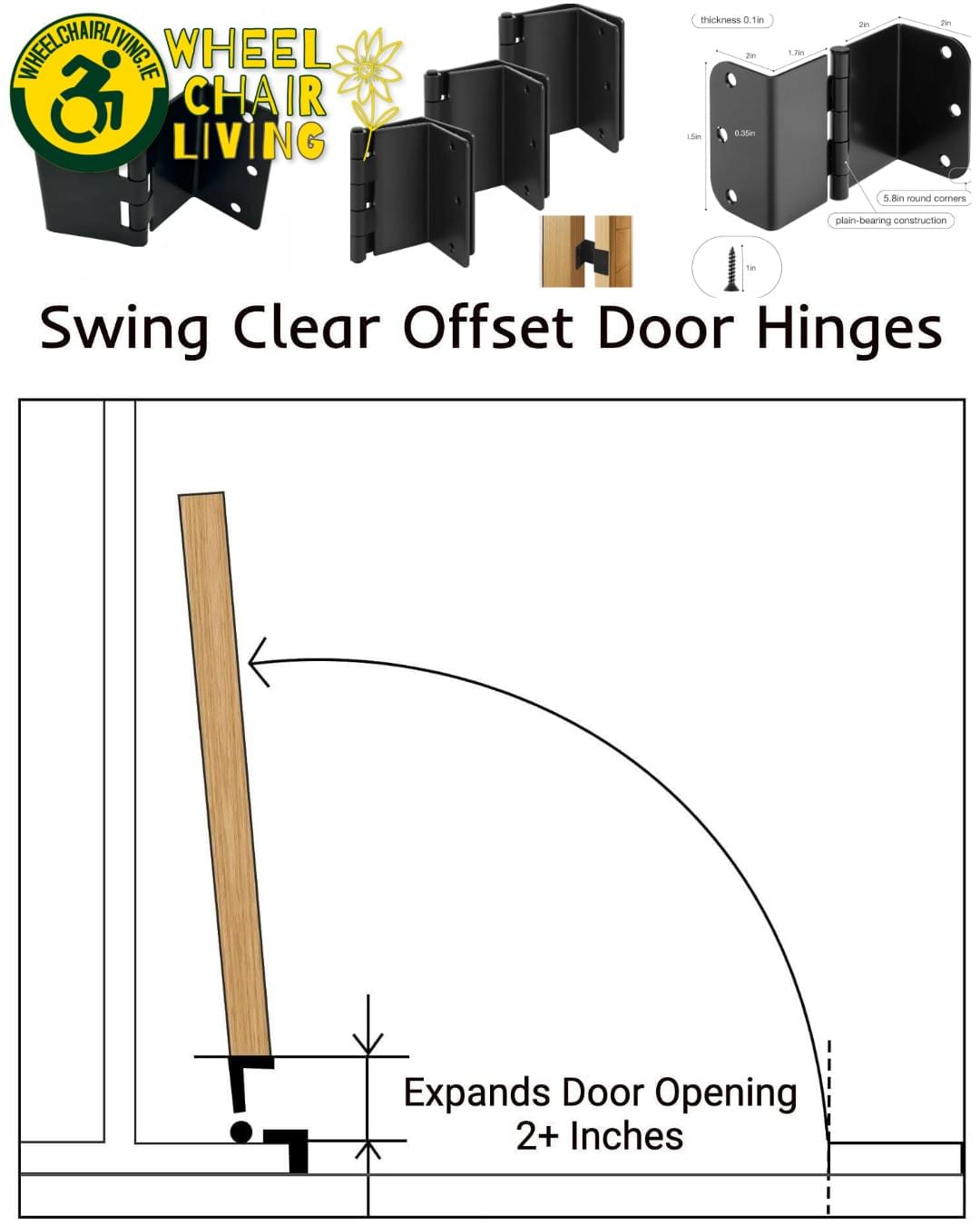 Standard doorways can be tight. Swing-clear (offset) hinges can add a few extra inches without needing to rebuild the frame.