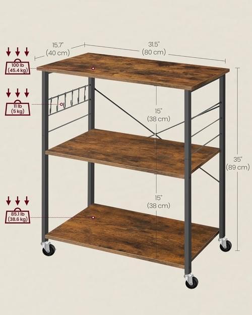 Designed with accessibility in mind, this low-profile kitchen shelf (40 x 80 x 89 cm) keeps everyday appliances like microwaves, air fryers or kettles within easy reach — perfect for wheelchair users or anyone with limited mobility. The open 3-tier layout with 38 cm shelf spacing provides plenty of storage without the need for bending or stretching.