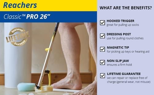 Make daily tasks easier without bending, stretching or straining. The Classic Pro is the trusted reacher tool used by Occupational Therapists — perfect for wheelchair users, seniors, arthritis sufferers, and anyone recovering from hip or knee surgery.