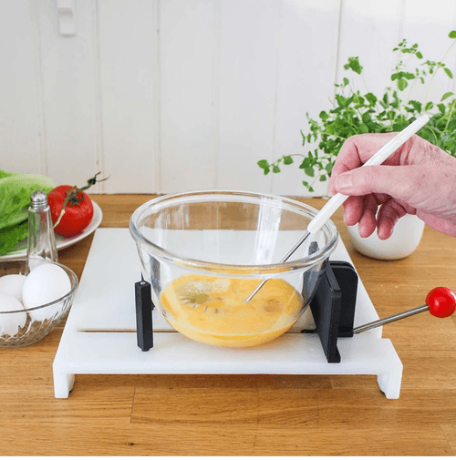 The Etac Fix preparation board is designed to give extra stability, power and precision for anyone with weak grip, one-handed function or reduced mobility. Ideal for wheelchair users, arthritis sufferers or stroke recovery, it allows you to chop, grate, peel and whisk without needing to hold items in place.