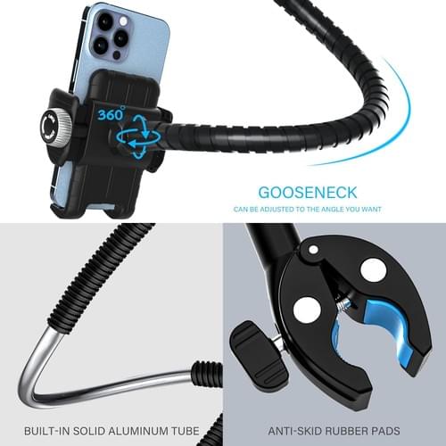 • Stable & Secure – Upgraded aluminum-core gooseneck wrapped in durable ABS plastic ensures a sturdy, wobble-free hold. Soft, non-slip rubber pads keep your device firmly in place without slipping.