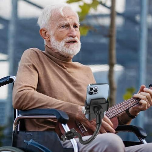 • Enhanced Accessibility – Keeps your phone or tablet within easy reach, helping users stay connected, entertained, and independent during daily routines or medical recovery.