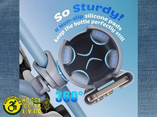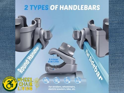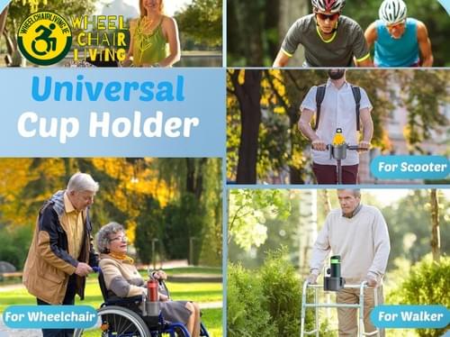 Designed with accessibility in mind, this cup holder is compatible with most wheelchairs, mobility scooters, walker frames, rollators, and even strollers, bikes, lawn mowers, golf carts, treadmills, and more.