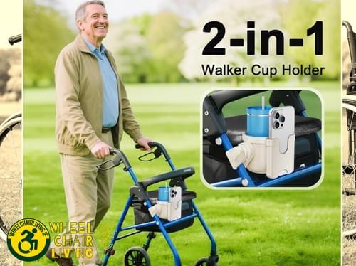 Universal Wheelchair & Mobility Scooter Cup Holder with Phone Mount – Secure, Non-Slip & Adjustable
