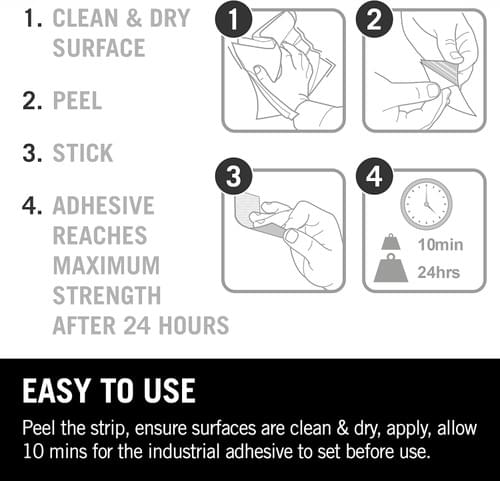Reusable and durable, the strips can be repositioned whenever needed. Suitable for indoor and outdoor use.